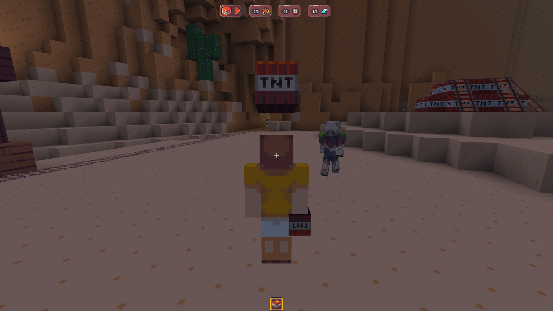 As a tagger, you have to chase any other player and punch them so they have to carry the TNT instead.