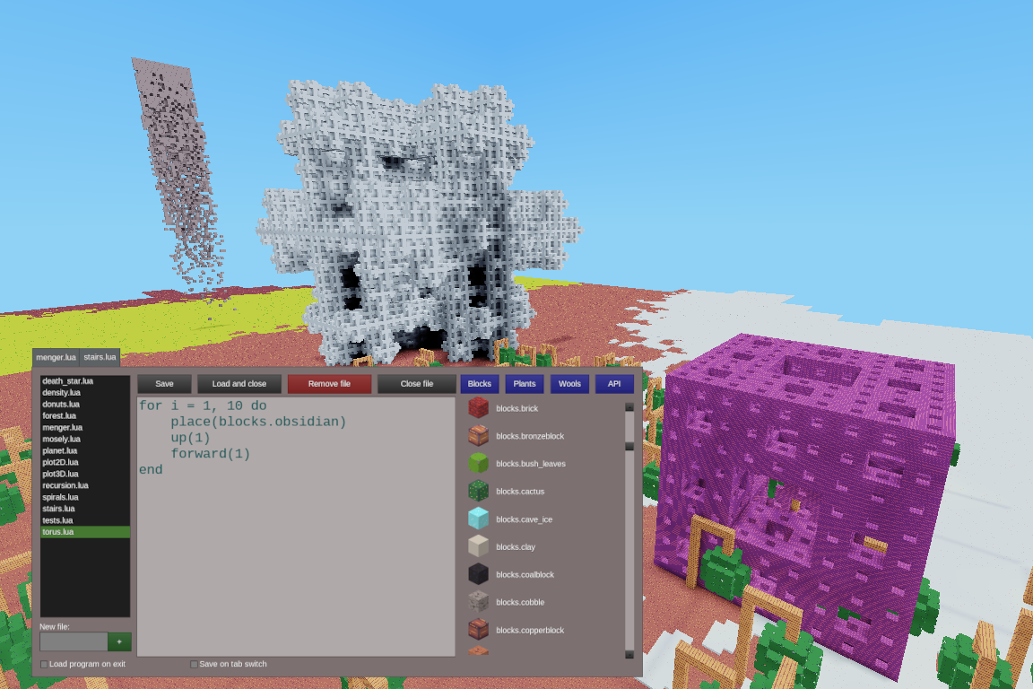 This game is mainly based on the CodeBlock mod for the programming interface. This game provides a flat world and a few other settings and limitations for a better programming experience.