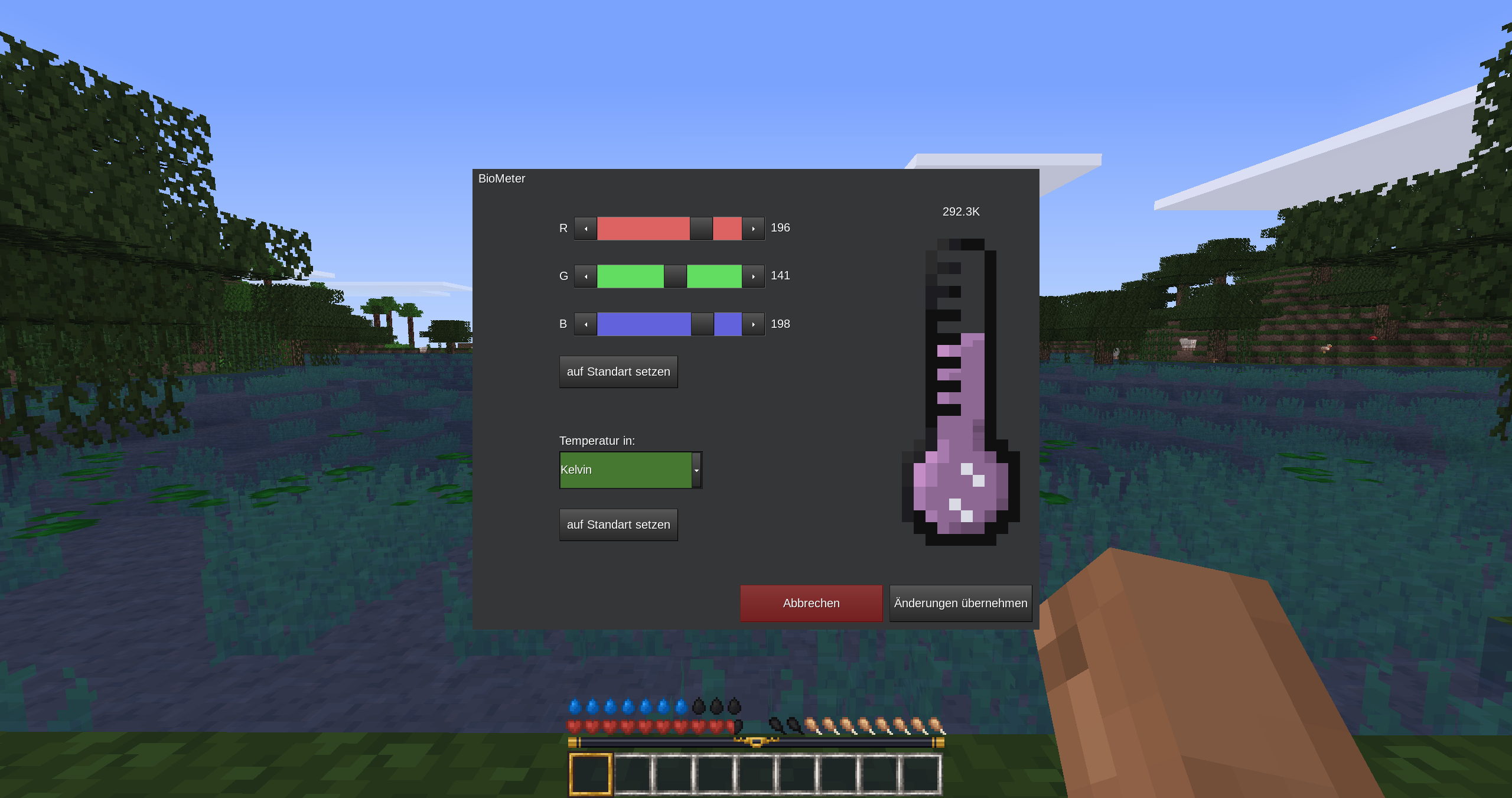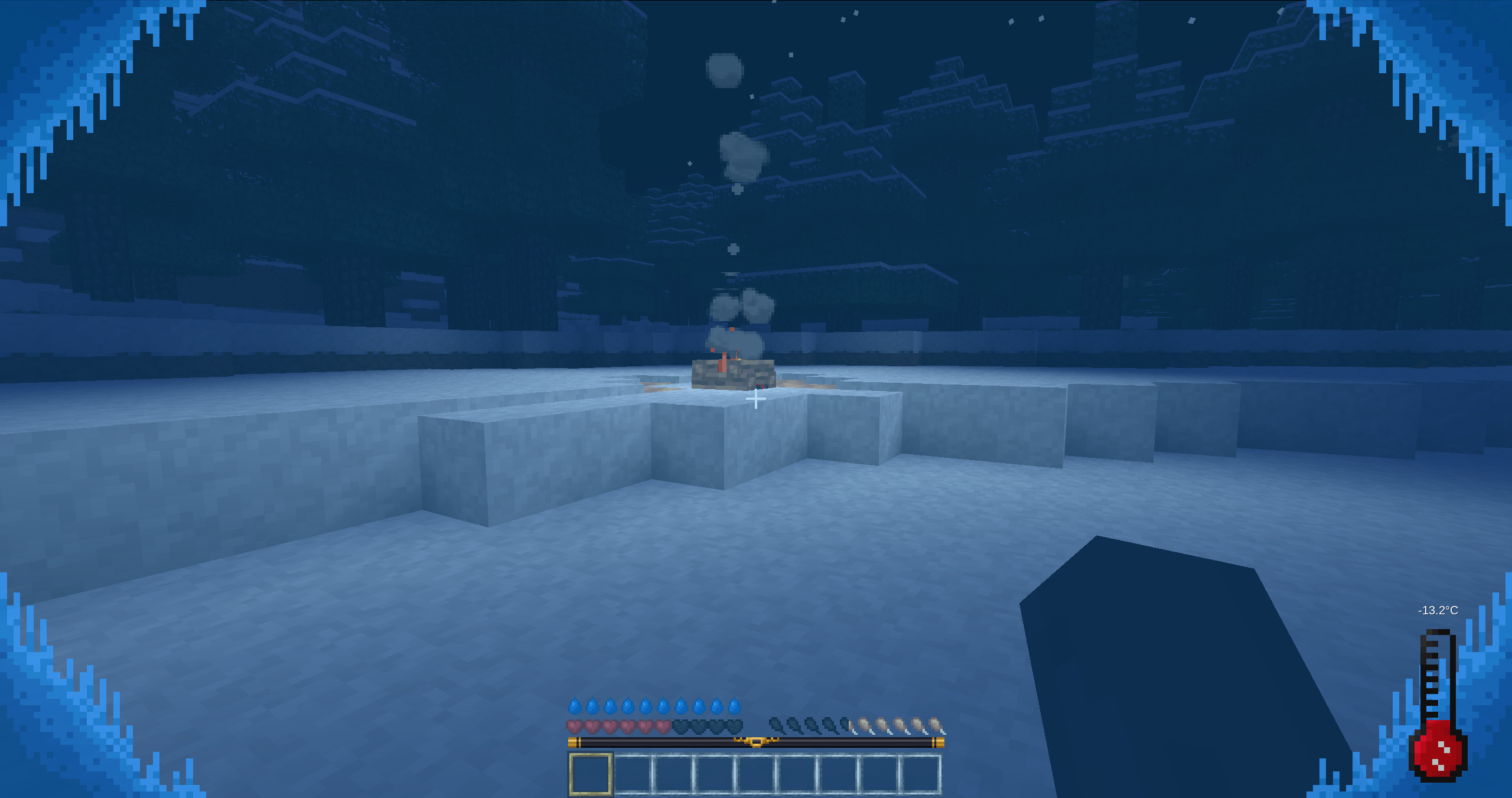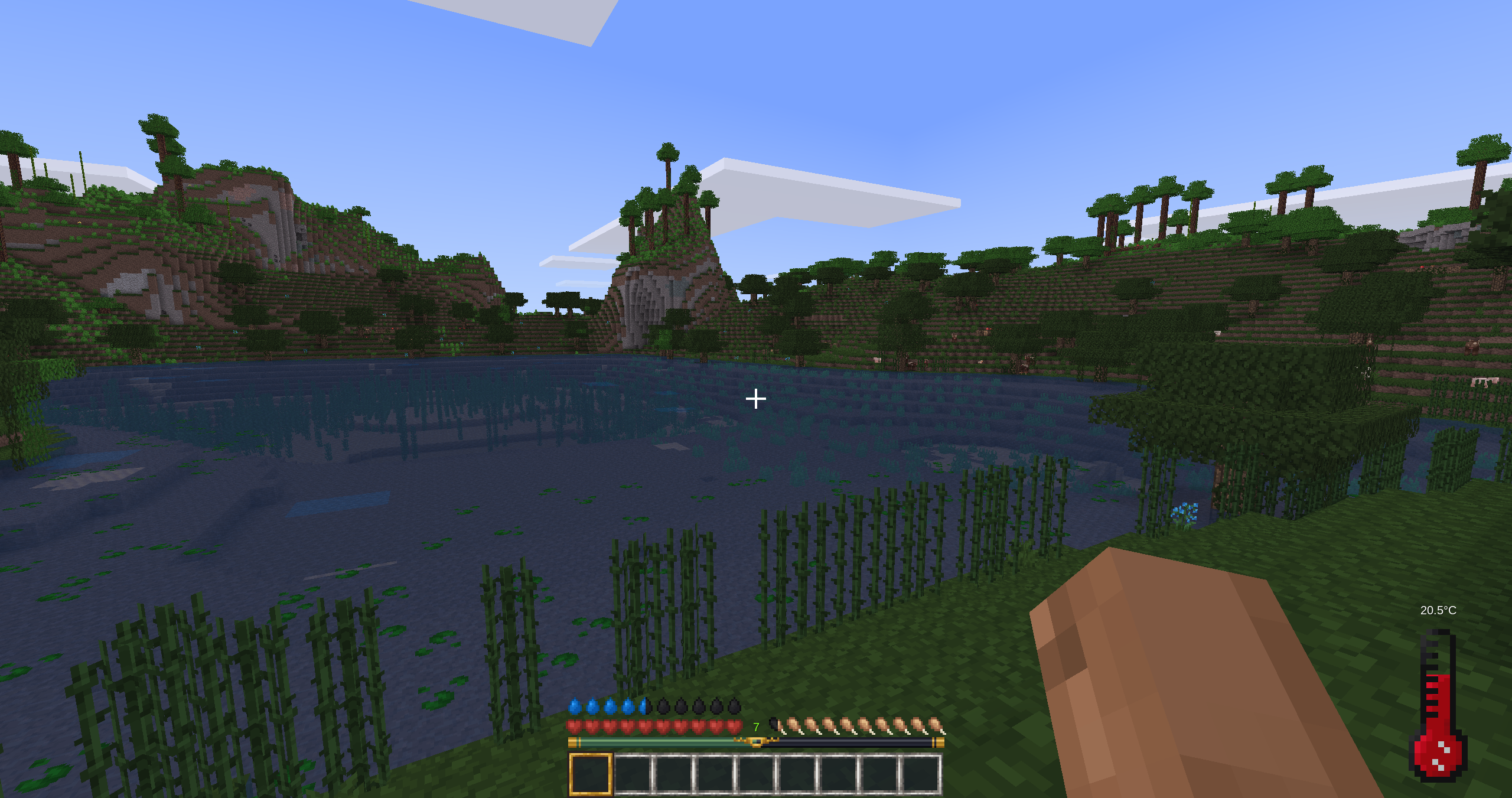 This mod adds a hydration and temperature system. If you don't want to die, try to stay in moderate areas and don't forget to drink!