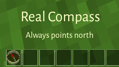 An interactive compass that will continuously point north when placed in one of the first eight slots of your inventory.