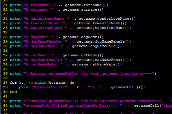 This Minetest mod is intended as a helper to other mods that need to generate random names for NPCs and other mobs. I originally wanted to add proper names to the AliveAI mod, and it seemed sensible to just make it generic so other mods could use it too.
