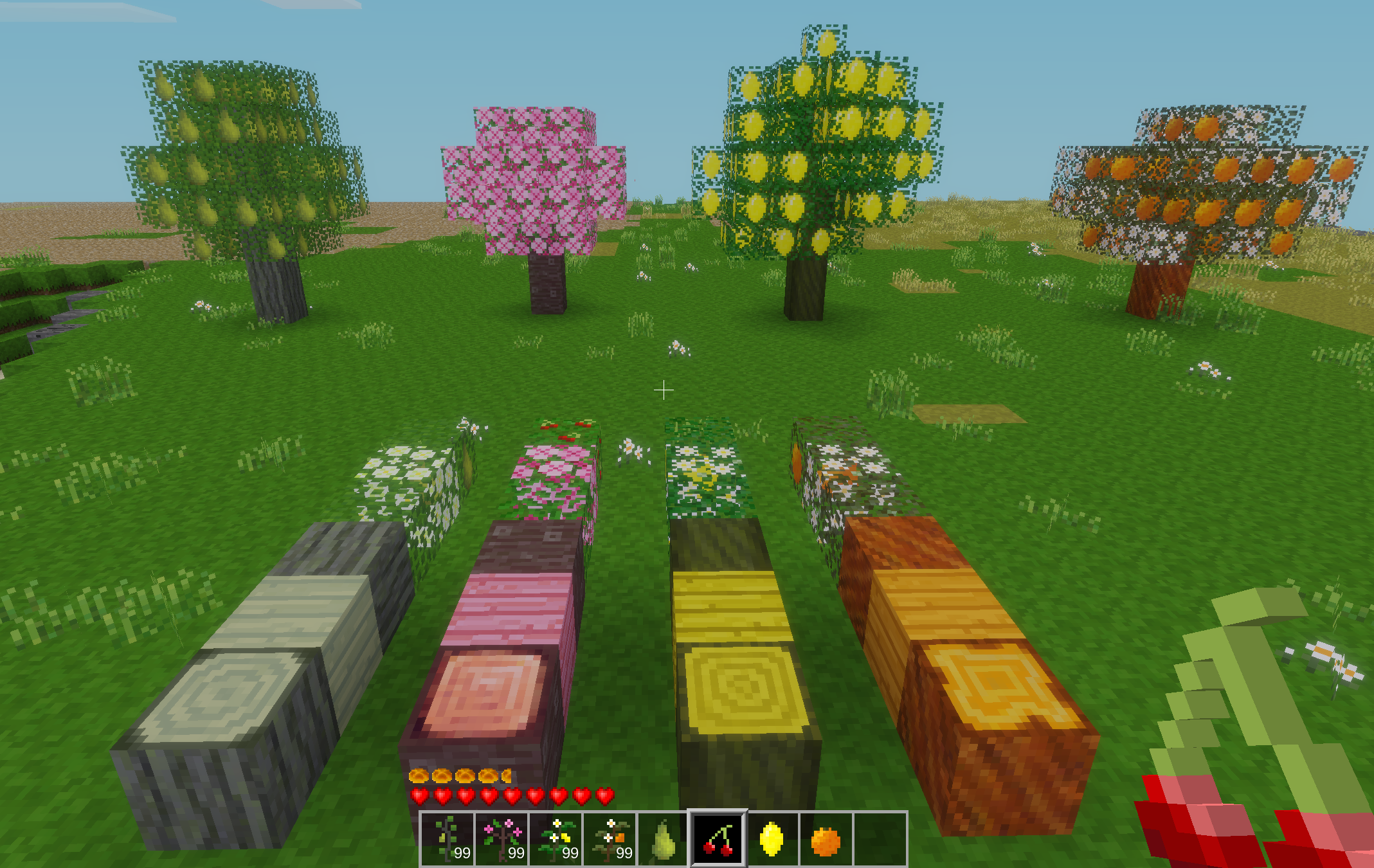 - Can collect fruits by right-clicking on the block with fruits or use the fruit pole to easily collect fruit in an area of the tree
