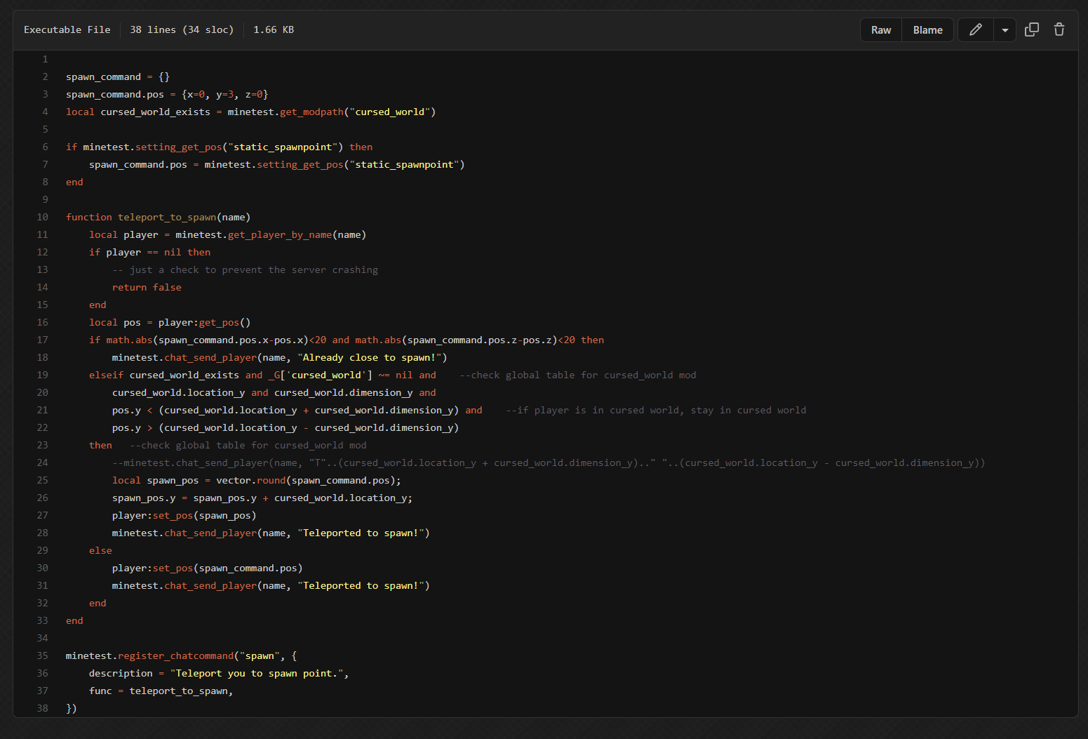I consider this mod crucial for my survival, and creative worlds, it allows you to teleport to the spawn instantly by saying /spawn which is quite convinient considering most players like to hang out near there, in servers without the mod, i find myself almost always forgetting where the crucial world point is located, but not anymore. now, i tap 6 keys, and poof im there! thanks lag01 :)
