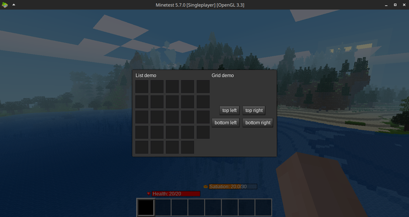flow_extras.flow_container_elmsset. Intended for walking over flow formspecs usingformspec_ast.walk. Added in 1.3.flow_extras.walkThe above, done for you. Added in 1.3flow_extras.searchA function for searching for nodes matching particular descriptions. Used just likewalk. Supports multiple names in one iteration to allow you to make multiple changes in only one search (O(n) instead of O(n * m)). Added in 1.3- Throws a more readable error message if