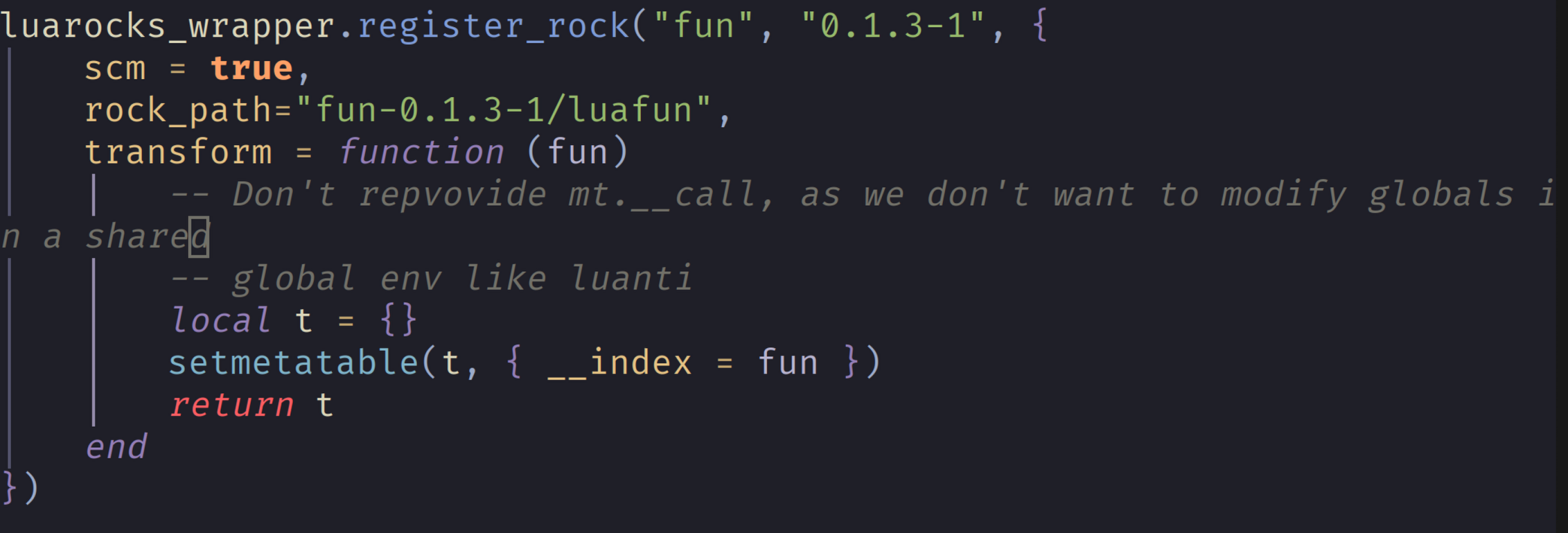 But what if you must? What if you require something so complicated, so advanced, that it would take months to work on? What if security depends on the correct implimentation of this mod? What if ... someone already did the work for you, in a luarock, but they don't even know what luanti is, and they don't seem interested in packaging thier rock as a luanti mod?