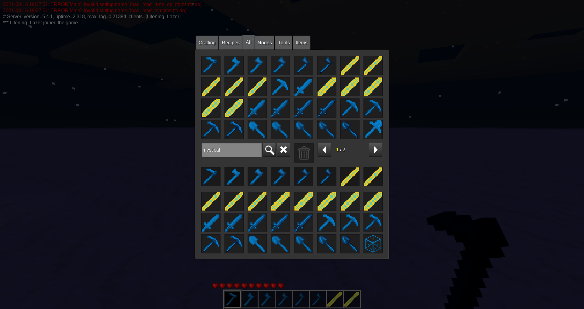 tool progression past diamonds and adds mystical staffs and wands