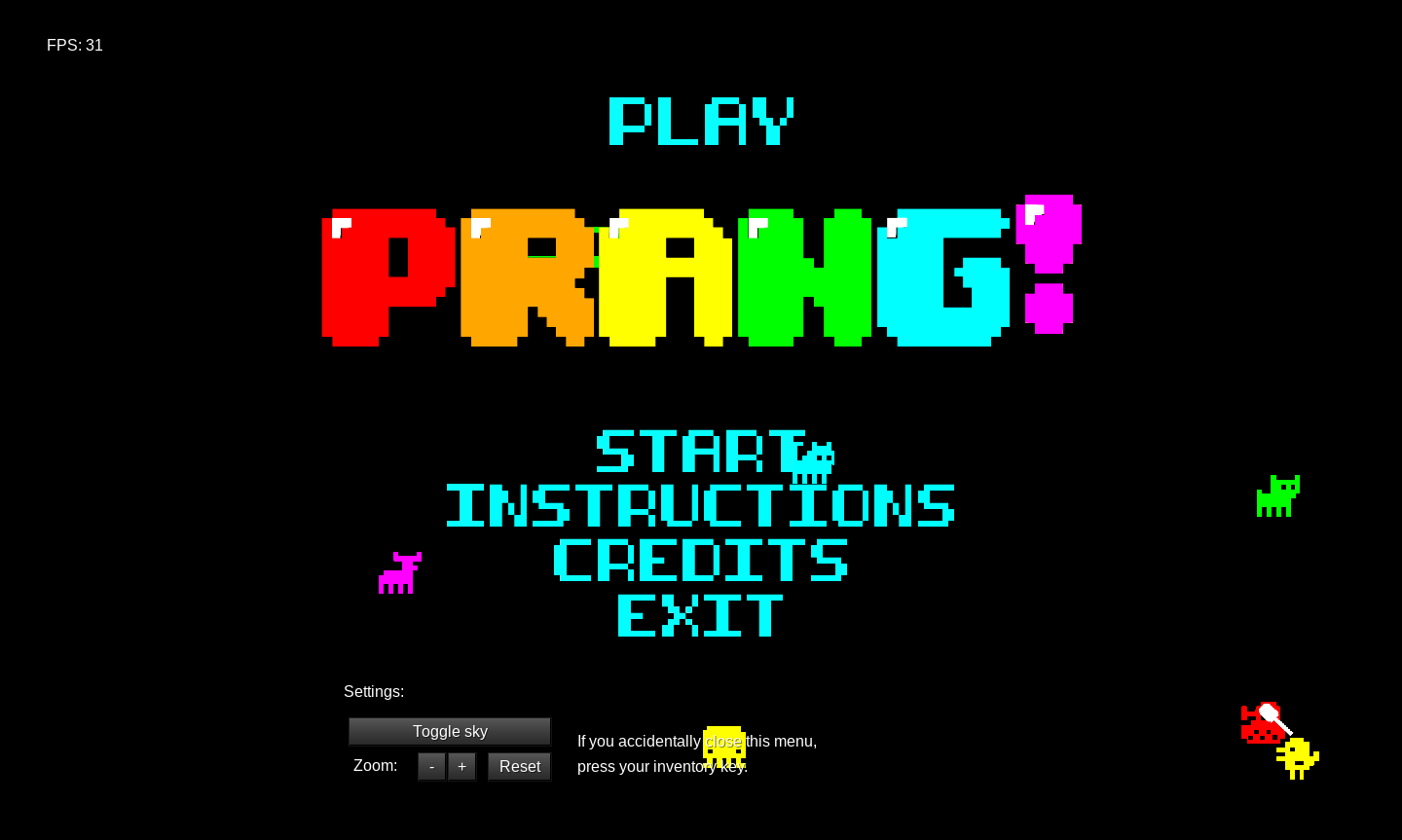 If you don't want to download PRANG!, Edgy1 hosts a public server on prang.edgy1.net port 30003. Note that movement processing and rendering is done server-side so there may be lag and/or glitching if you are far away from the server (which is currently in Germany) or have a poor internet connection.