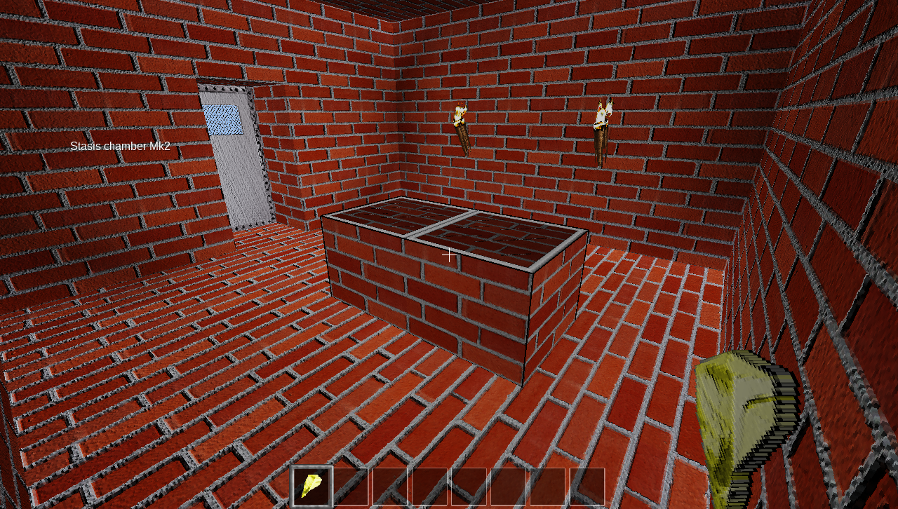 While in transit, players are shown a formspec with an option to leave, that teleports the player back to the original location of the stasis chamber.