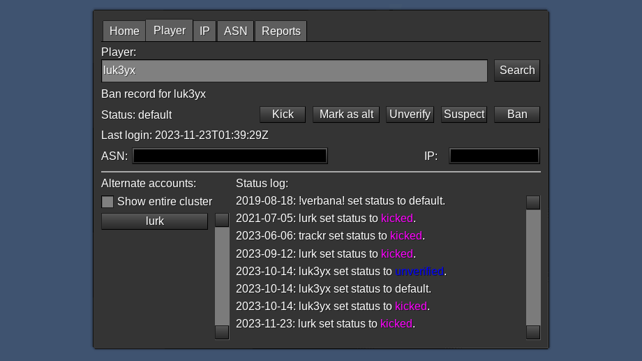 Adds a GUI to verbana. Use /verbana_gui to open. Actions (such as adding or removing bans) just use chatcommands behind the scenes.