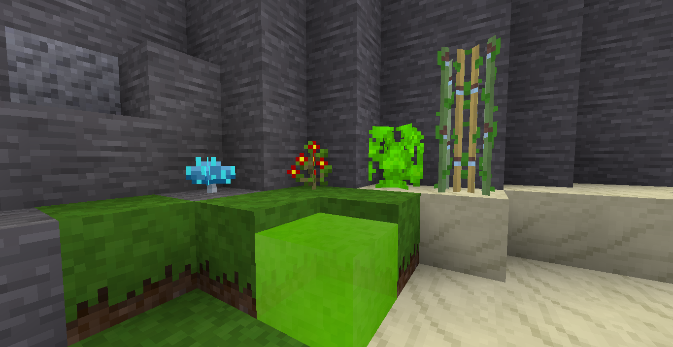 - glow mushroom (naturally ligh the caves a bit)