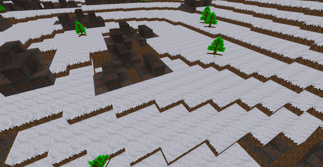Currently what you'll get is all the kind of deserts, all grasslands and two cold biomes, with a bonus forest. And to make each biome worth exploring you'll find all the ores in the biomes as weird structures.