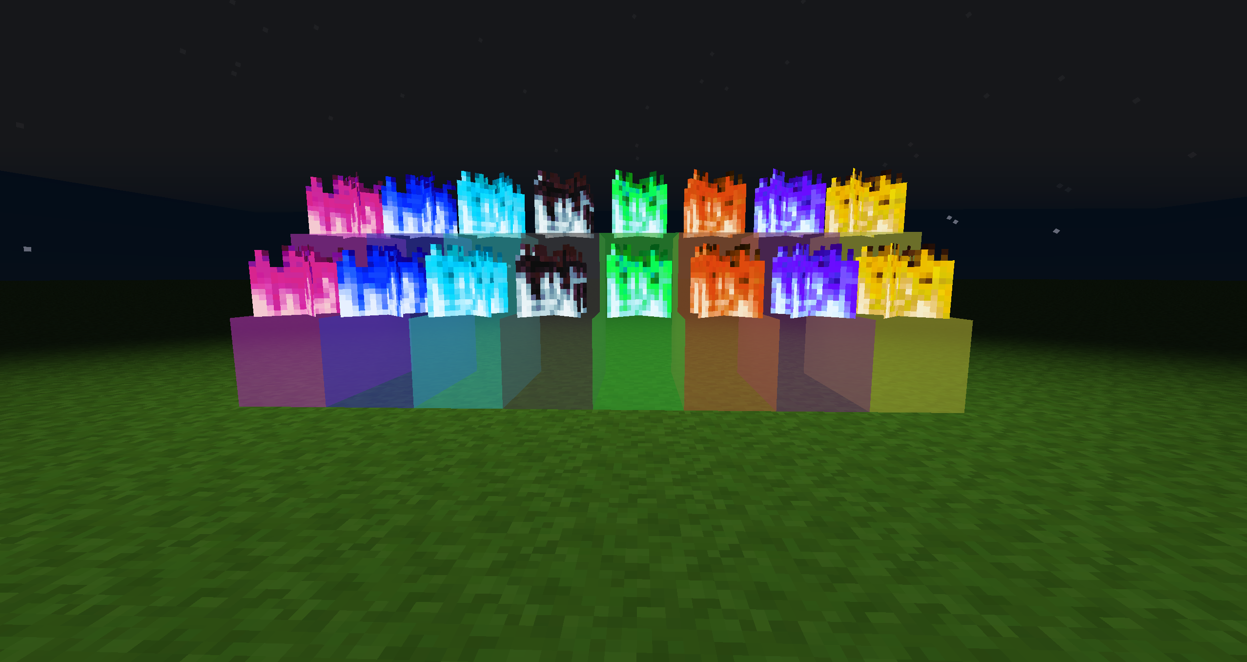 Coloured flames Minetest mod by Shara RedCat which adds: