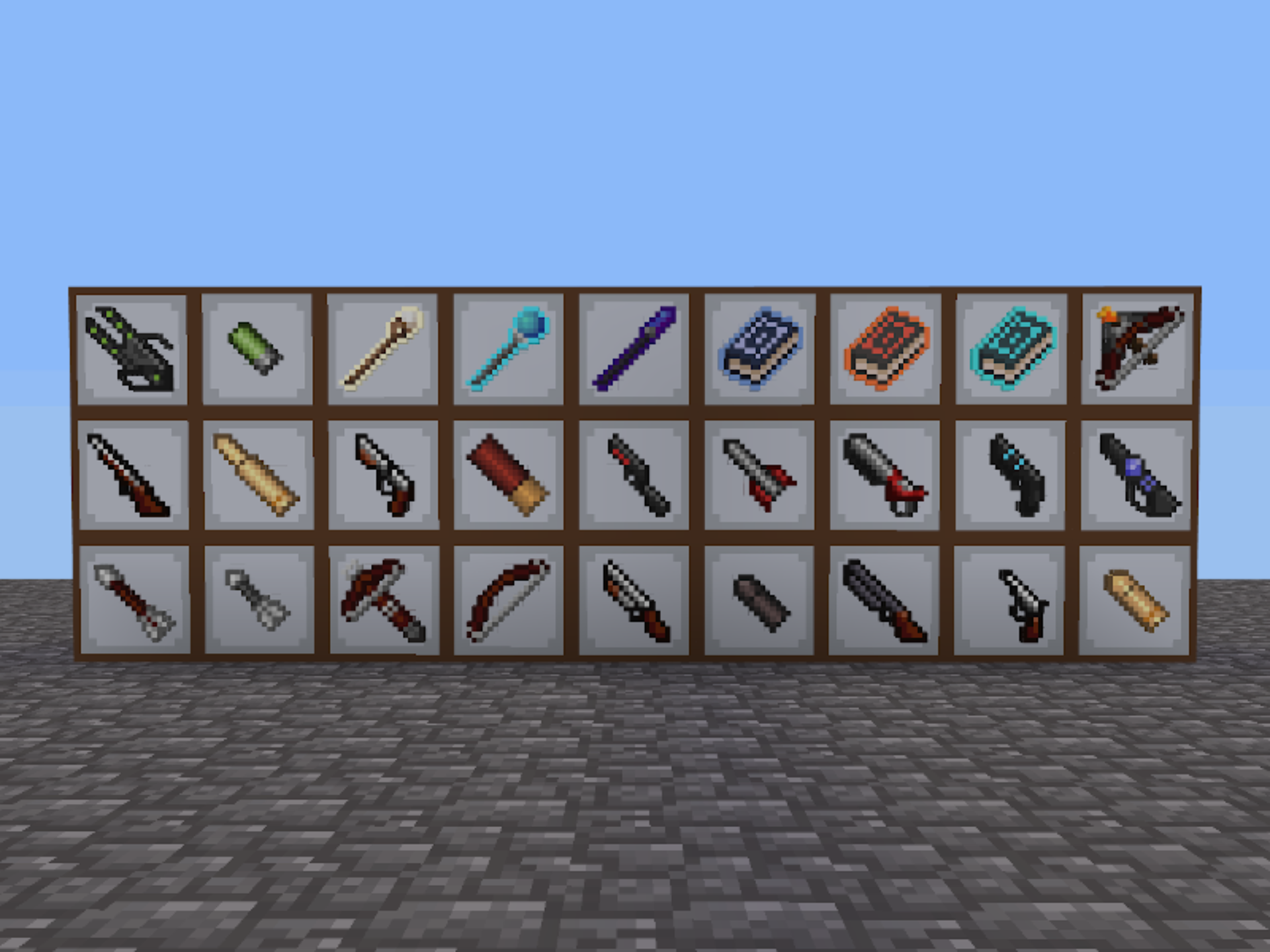 Bweapons aims at providing a full progression of ranged weapons, from primitive bows to sci-fi rifles or magic staves and spellbooks. Modpack also provides an API to easily make your own weapons.