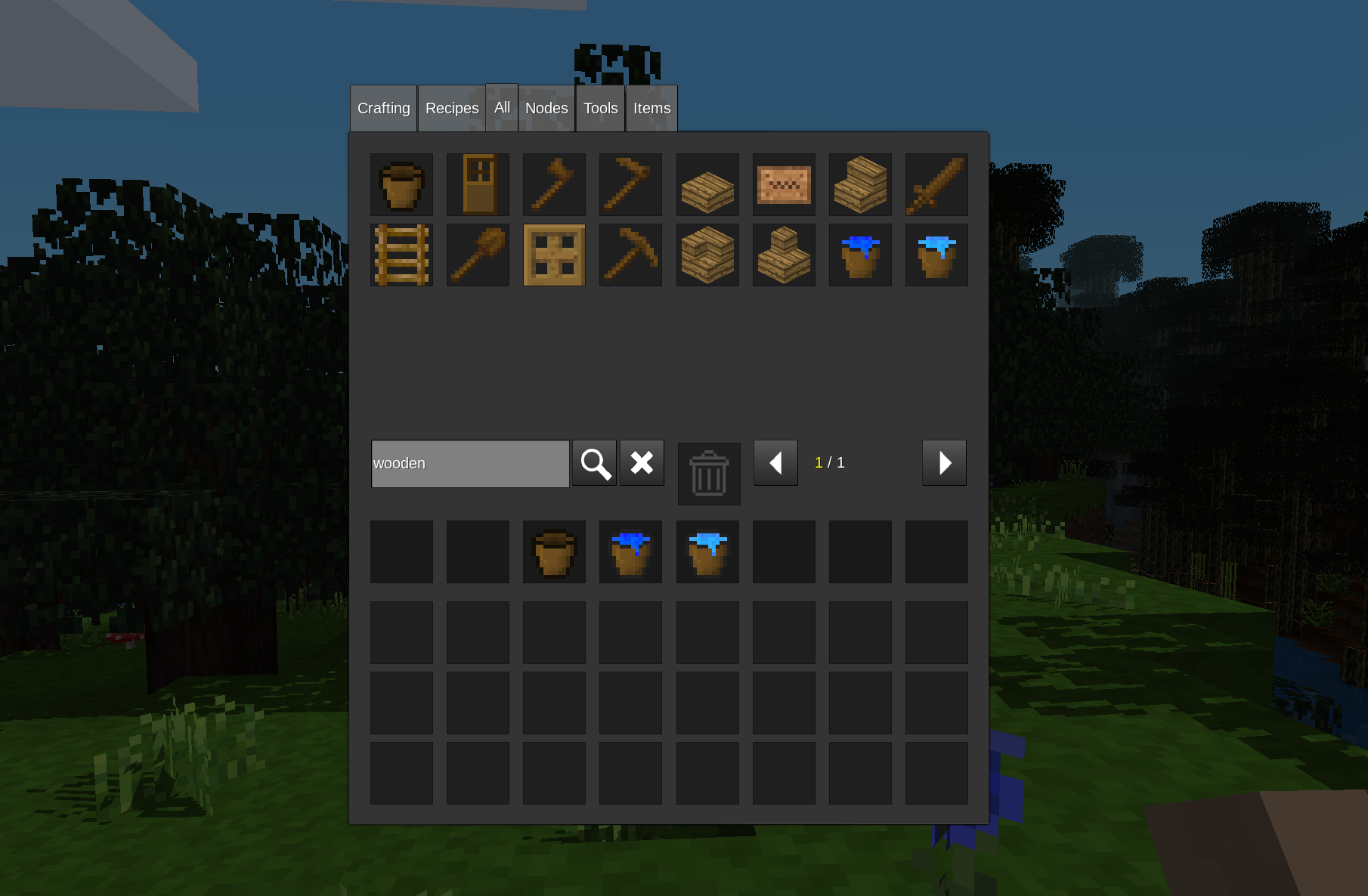 Adds wooden buckets. These are easy to make, but can't be used to carry lava.