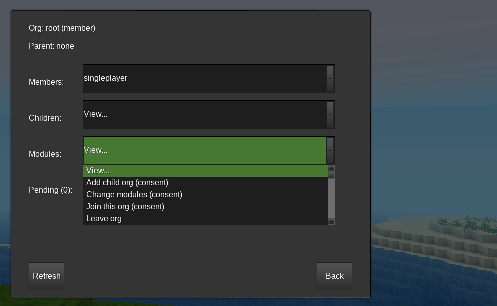 Modules might simply carry out actions in the game, or they might require a group decision to do so. They might also change the modules available to users of a given org. There are currently two ways of doing this: