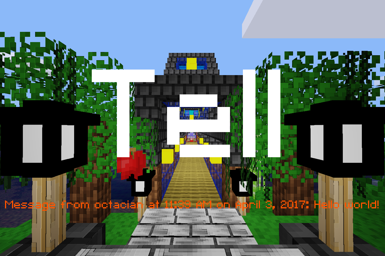 Tell introduces a single command, /tell (note: if you have mesecons_commandblock, the command is renamed to /tellafk due to a conflict). It accepts the same parameters as does /msg, however, it does not require that the player be online. Instead, it registers the message sent (as well as the time the message was sent) to be shown next time the player specified is active. Whenever a player joins or sends a chat message, tell checks its internal table of messages and displays any that were meant for the player. This is useful both when you don't know when a player will come back online, or when a player is AFK (as the message is not shown until they send another chat message). Warning: If you accidentally enter the wrong player username, the message will be stored anyway (even if the specified player has never joined before).