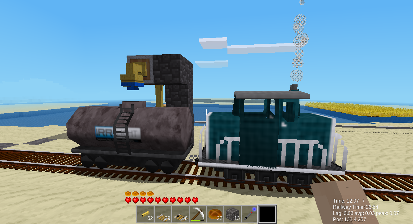 For a tank wagon to be filled/drained, the wagon needs to be positioned with its center at the spigot (+-1m) and it must not move. Then, use a regular TechAge pump to pump a liquid into or out of a wagon.