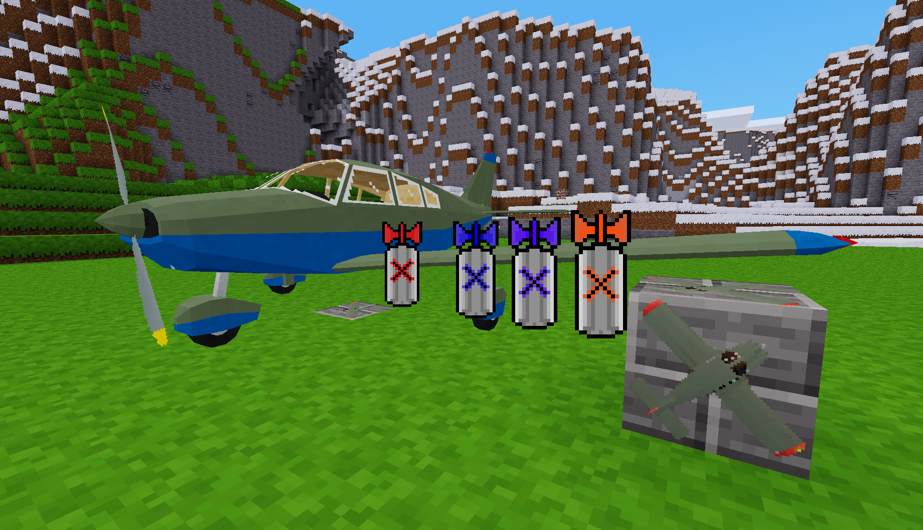 - Adds a bomb that drops on promnt from the airplane and explodes on collision with ground(blue/red/purple/green/orange version)