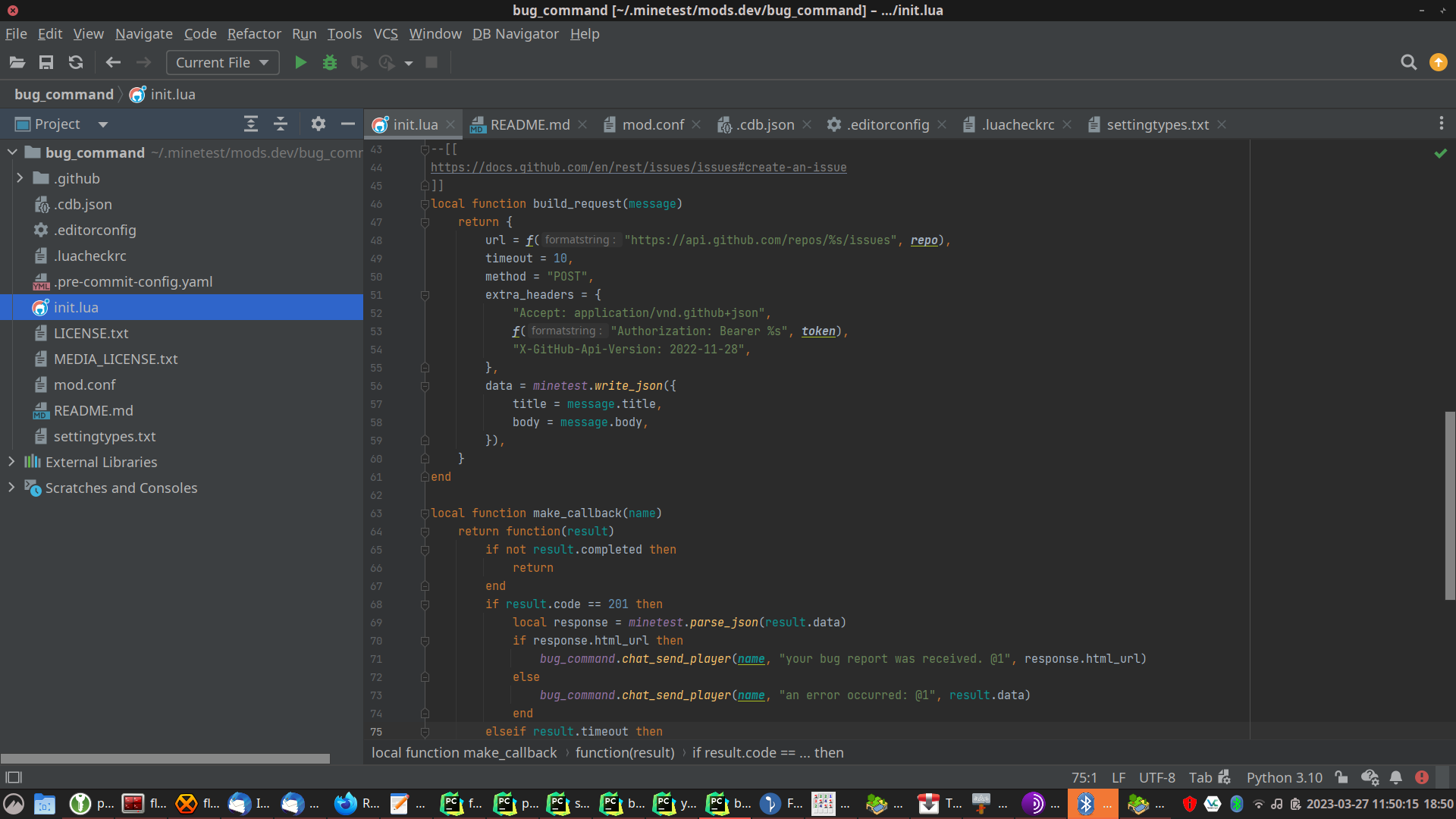 e.g. bug_command:github_repo = fluxionary/fluxtest will add issues to https://github.com/fluxionary/minetest-fluxtest/issues