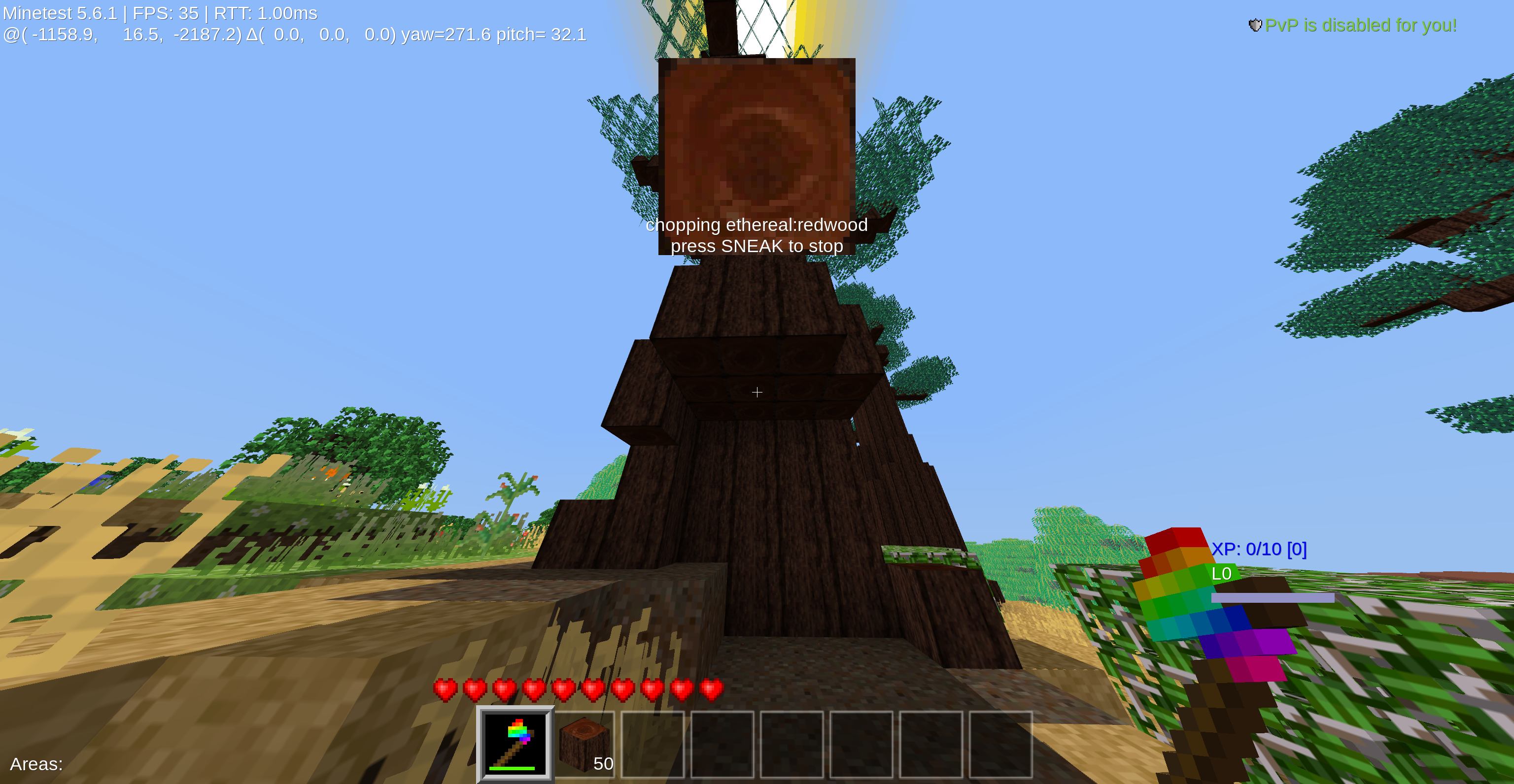 I want to like this but it feels so strange. As a player I walk up to a tree and break one log block then stop and and suddenly the entire tree starts disappearing and leaves fall. Trees other than the one I cut start disappearing too. I can walk around and the process of logs disappearing continues. I could go away from keyboard after hitting that first log block and still the tree disappears and I'd return minutes later with the log blocks automatically in my inventory.