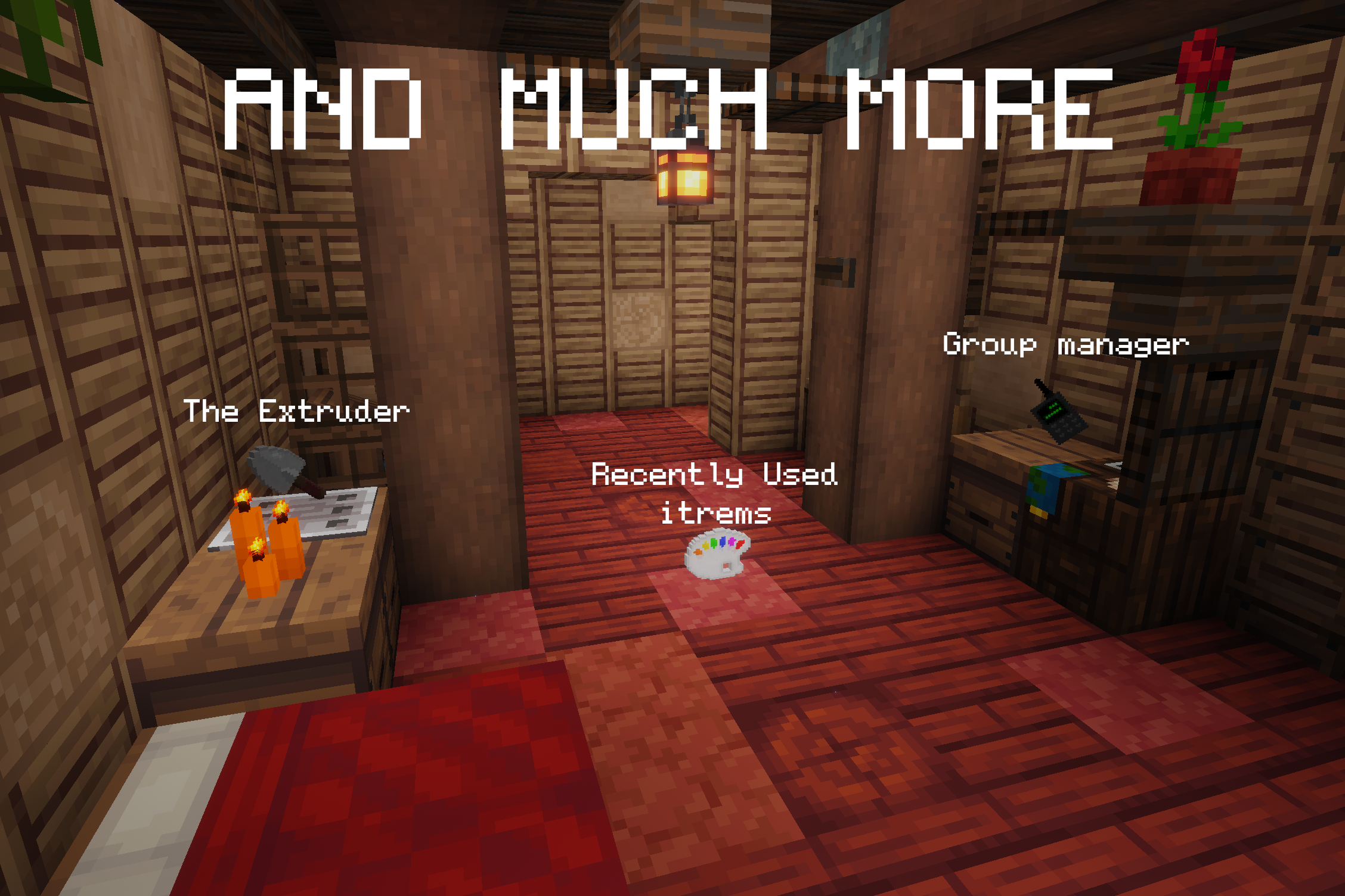 - wand that has a menu to select blocks, grouped by "block groups". Also other misc stuff