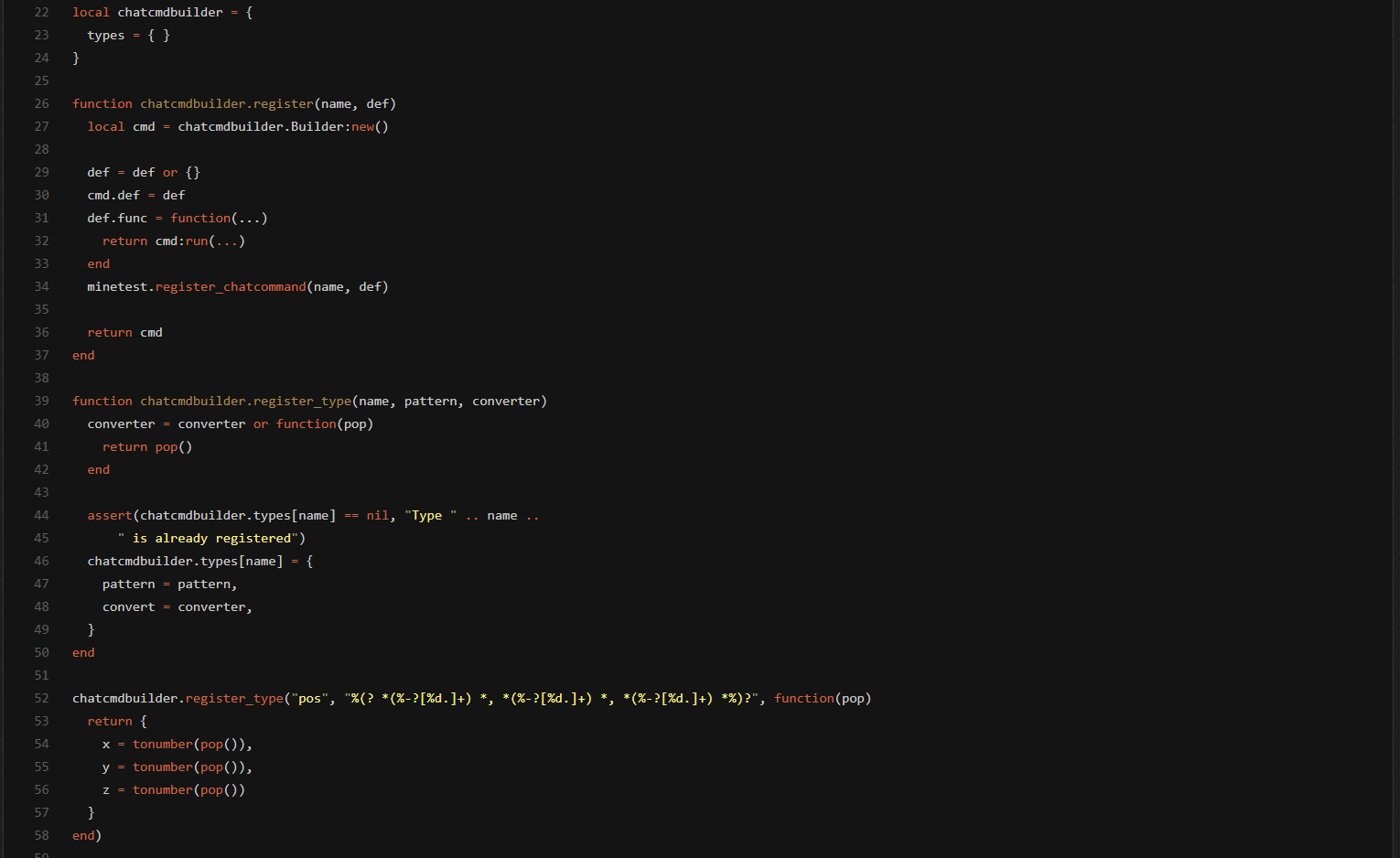 chatcmdbuilder.luafile in your mod, and thendofileit like so:local chatcmdbuilder = dofile("chatcmdbuilder.lua")