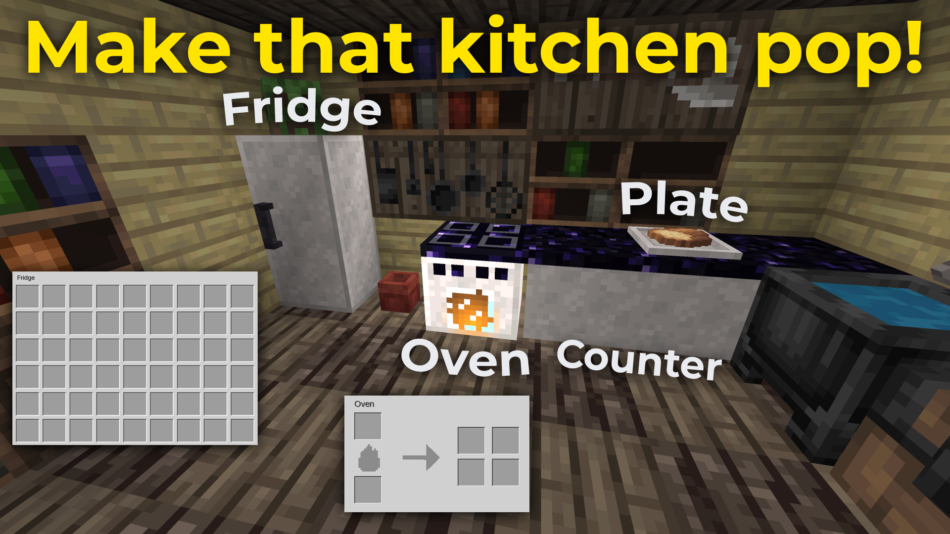 - Show off your food on frame-like Plates, and store it in two-block tall Fridges: 54 inventory slots in each, just like a double chest.