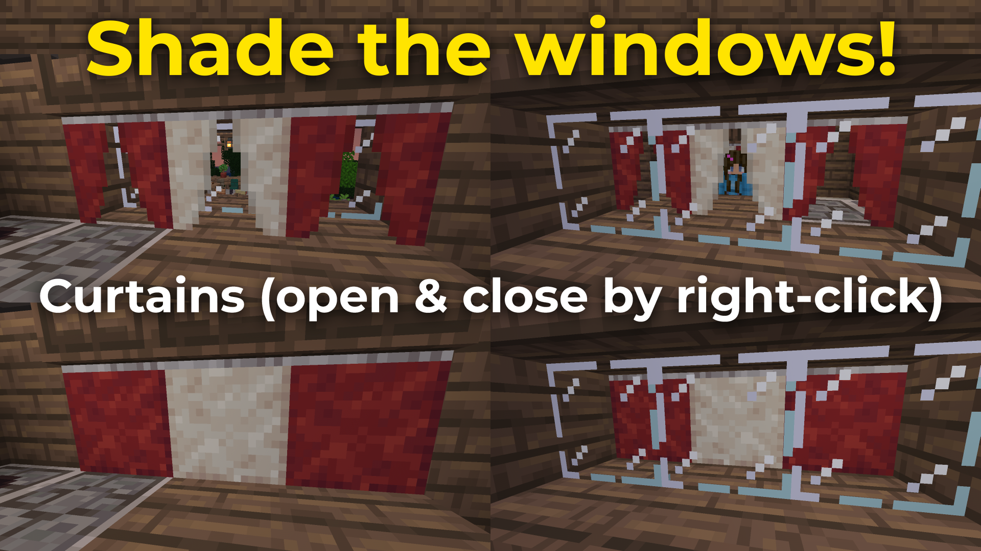 - Shade your windows with wall-mounted closeable Curtains, coming in all colors.