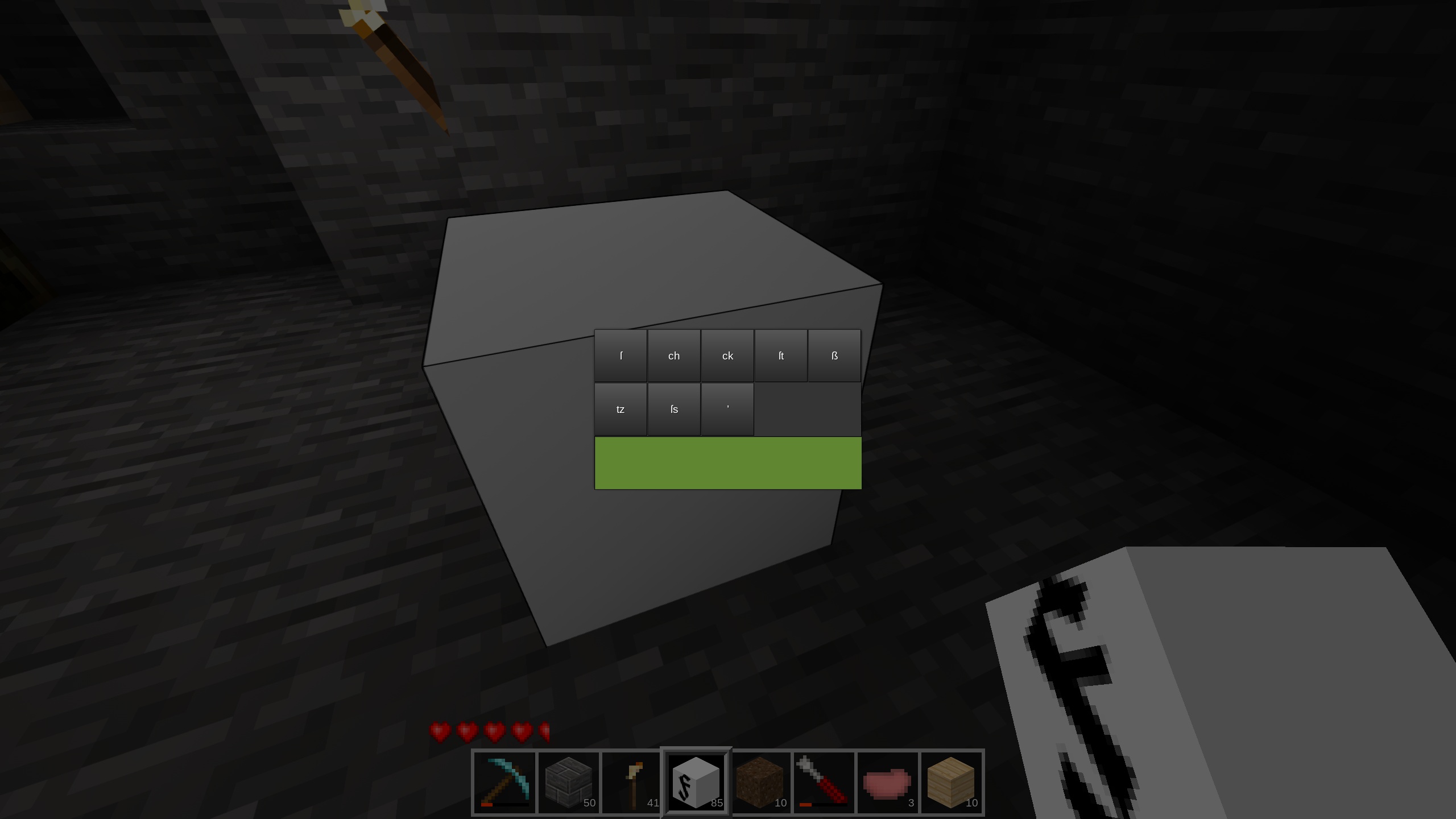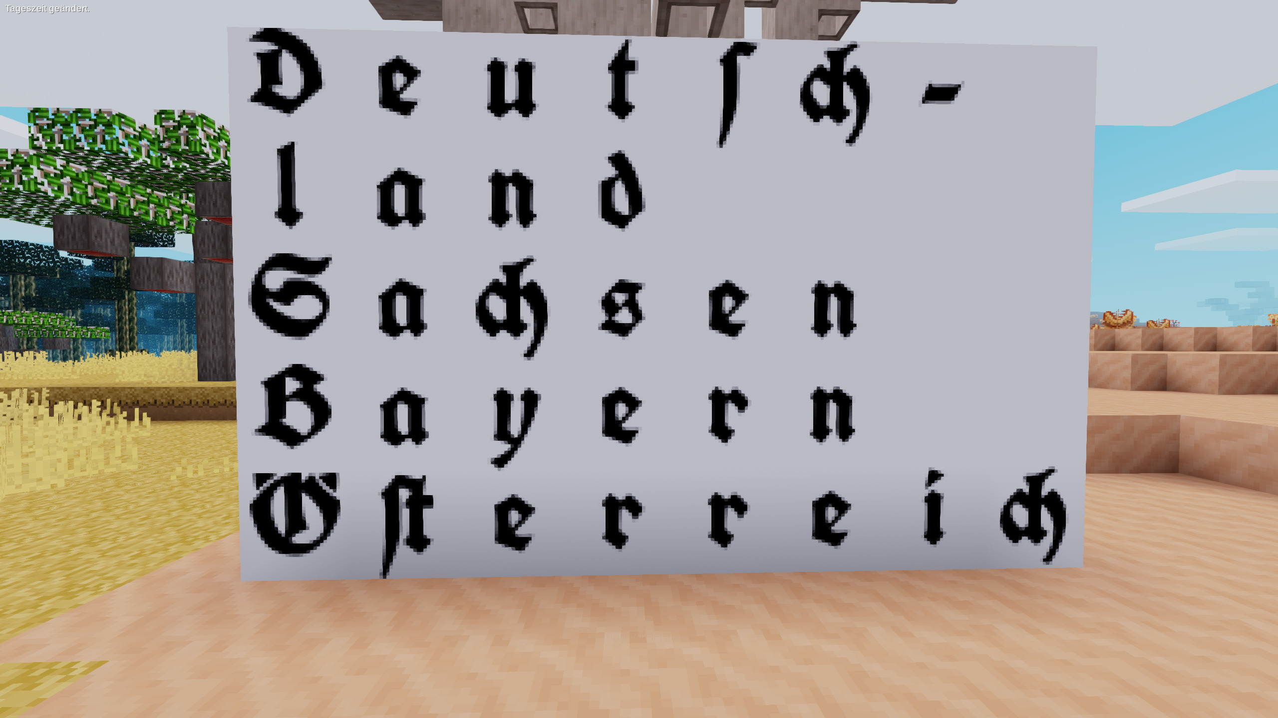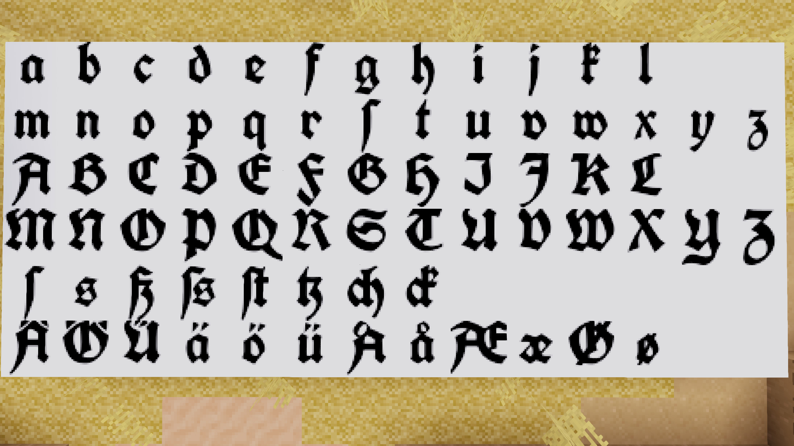Diese Mod folgt den Regeln des Sperrsatzes und beinhaltet deshalb nur die Zwangsligaturen ch, ck, ſt, tz, ß
