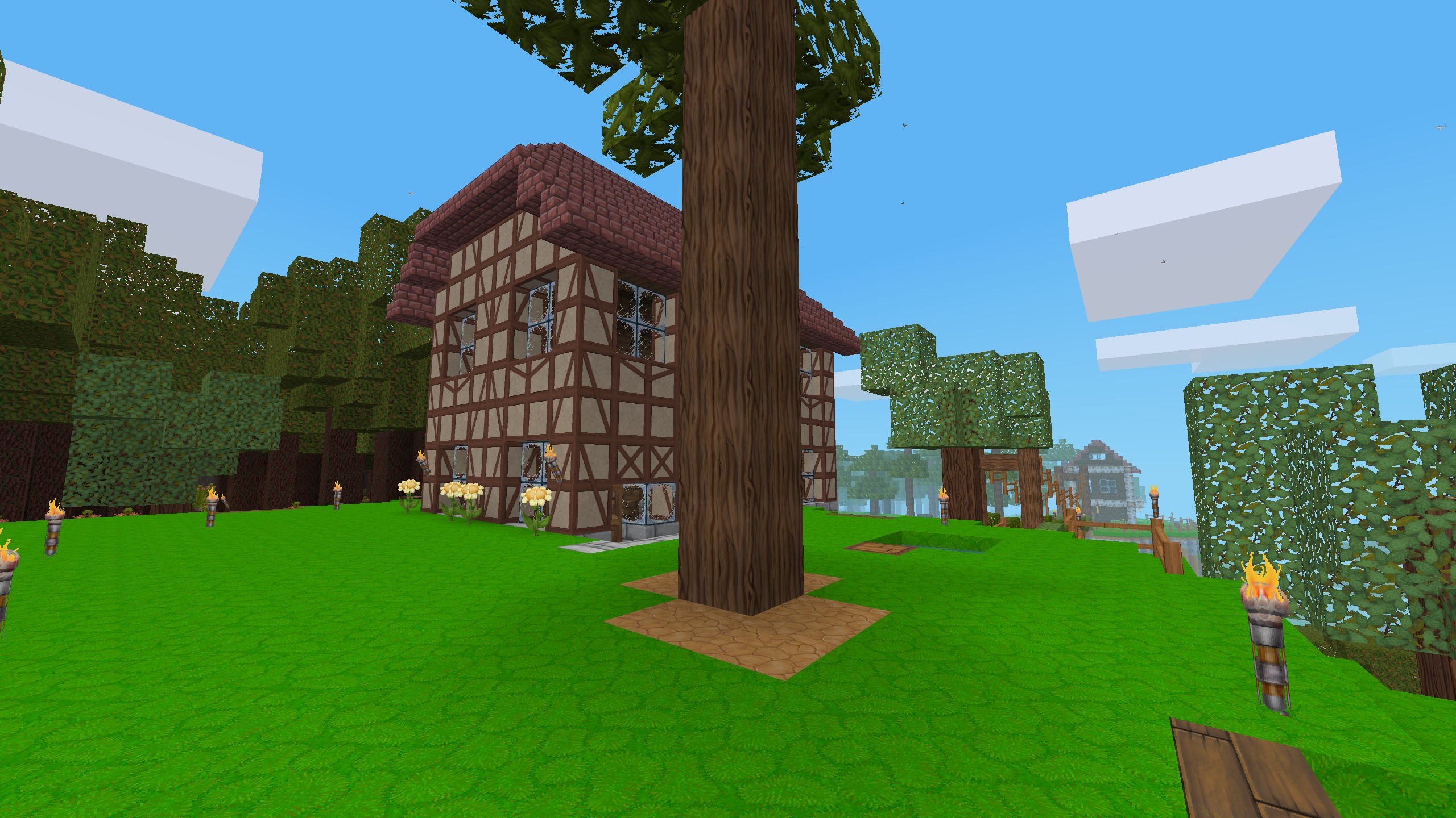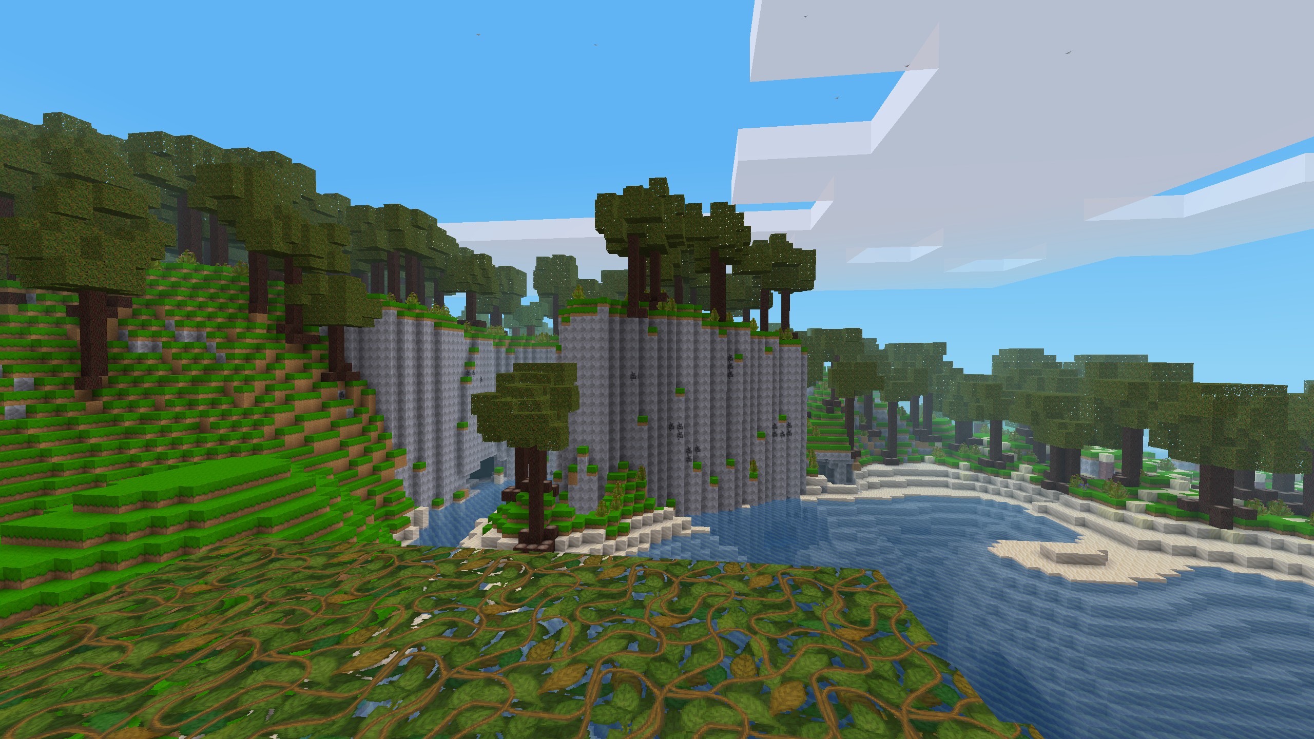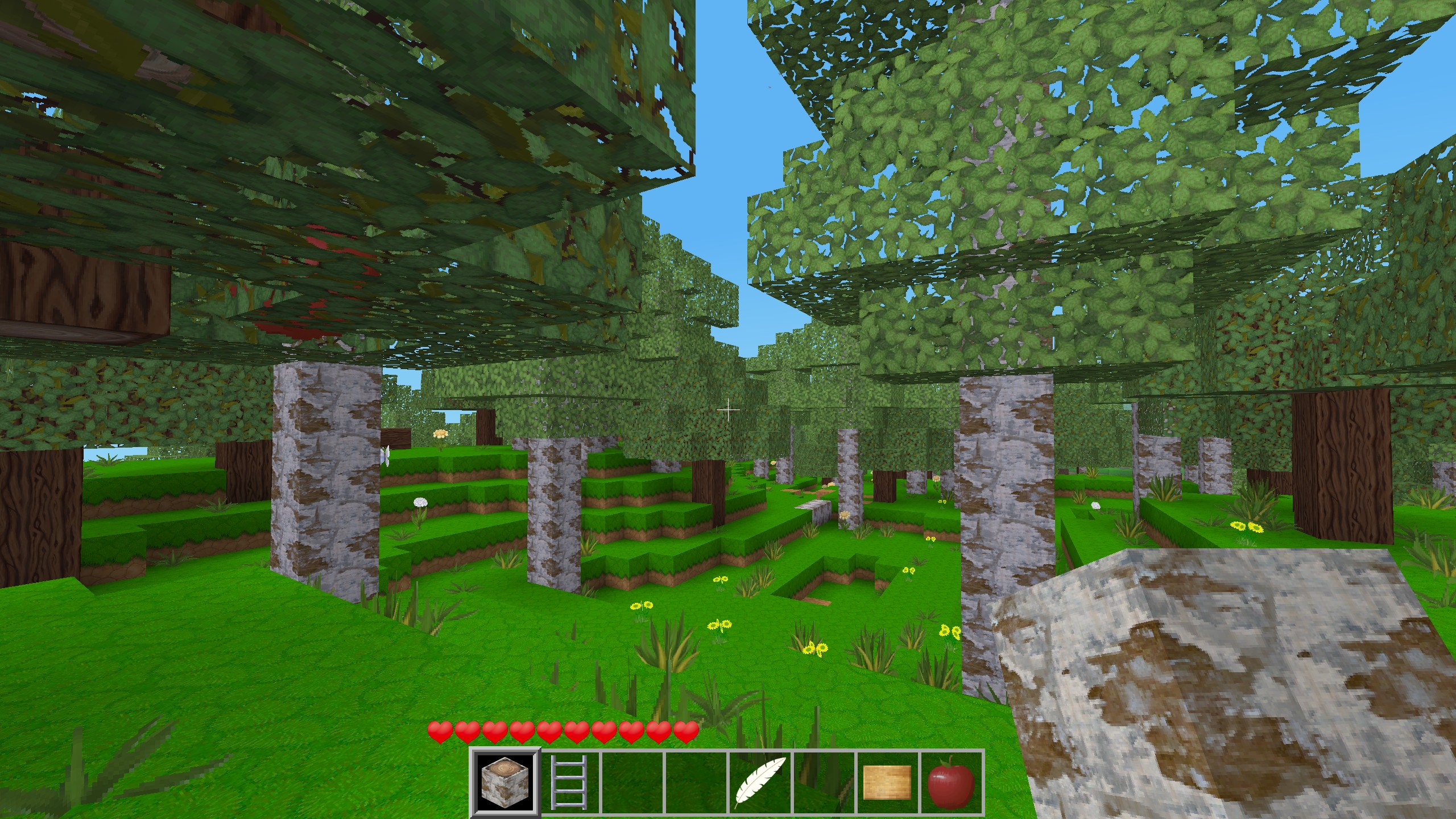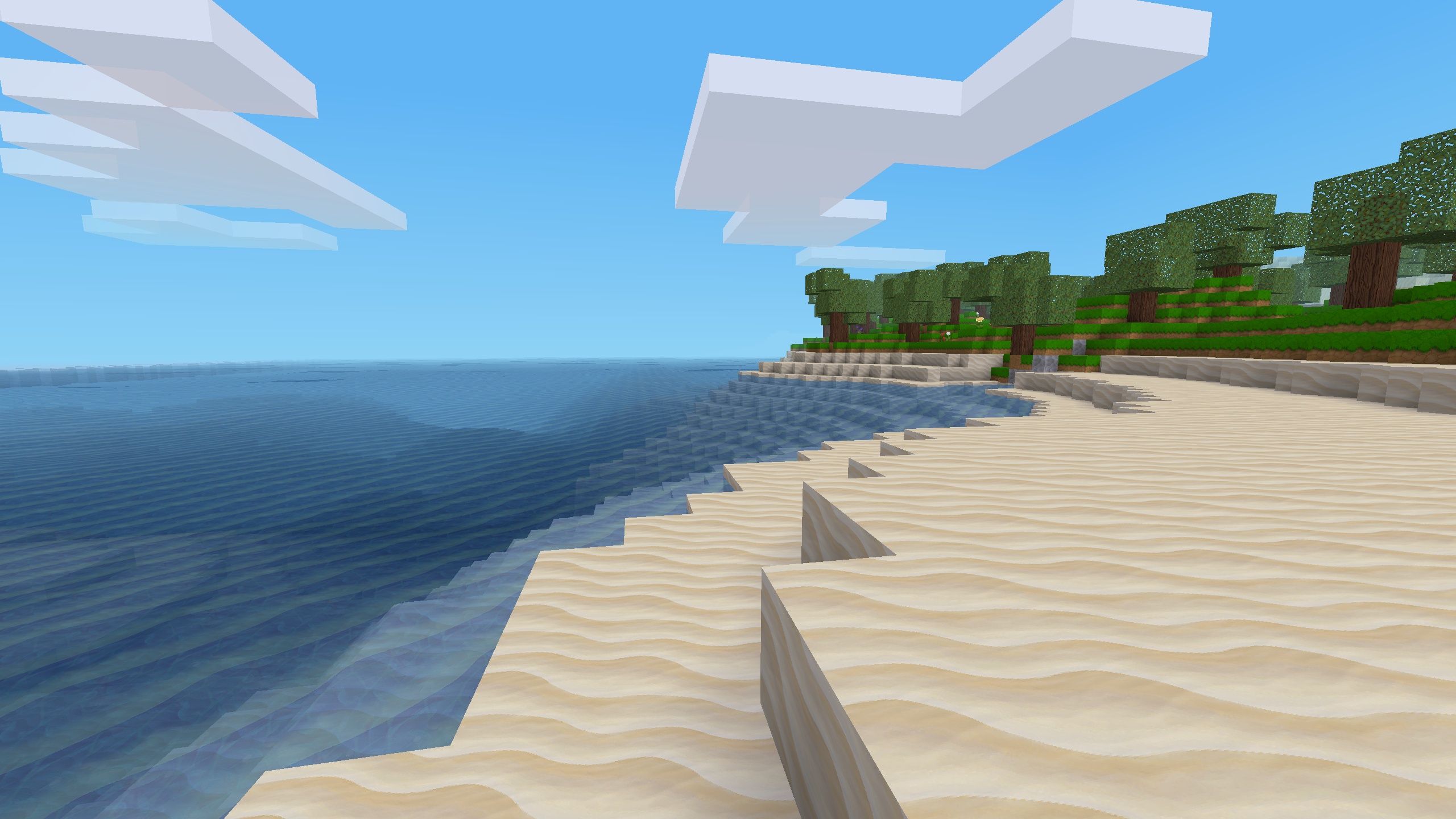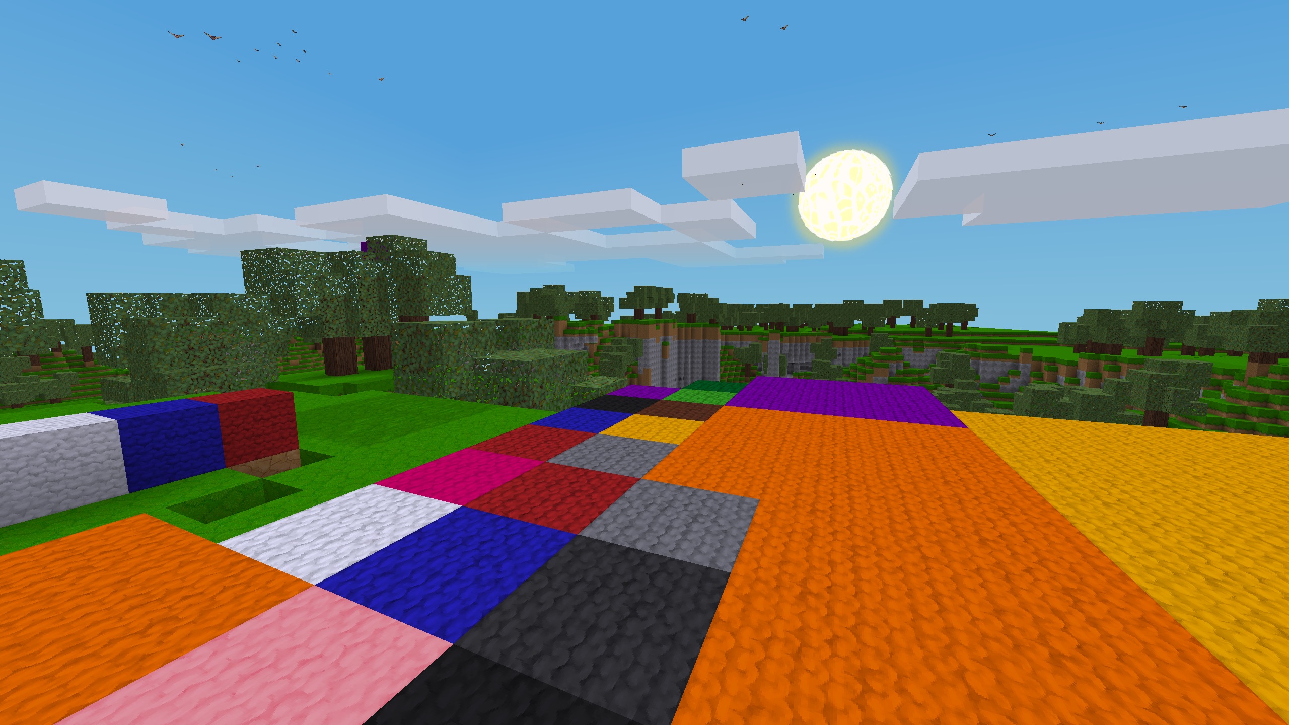 Minetest Game (compared to the original pack the water is transparent and the colors of sandstone and wool have been changed)
