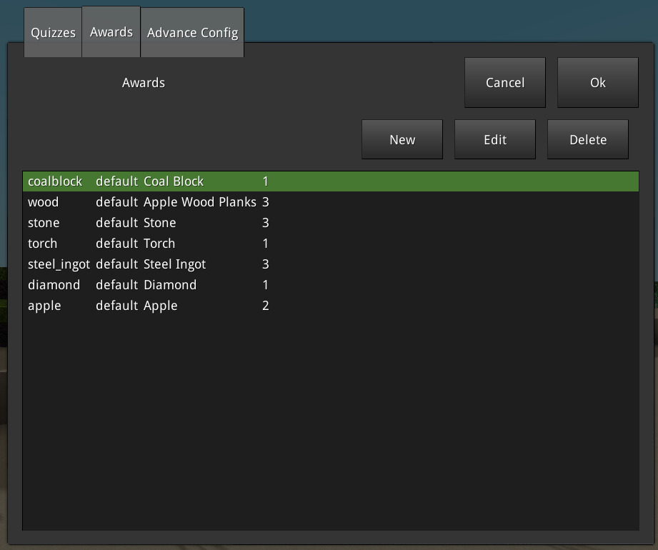 /quiz Chat Command to mange quiz(need quiz privilege)This mod is already builtin in Minetest:Education Edition