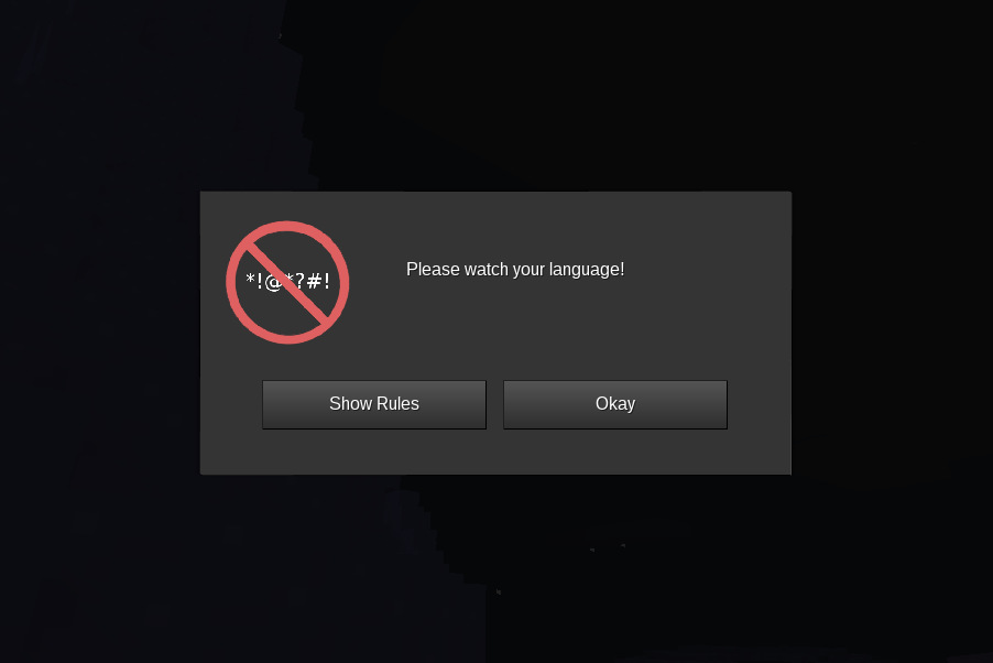 - Warning formspec - informs the user that bad language is not permitted (first violation in rolling period)