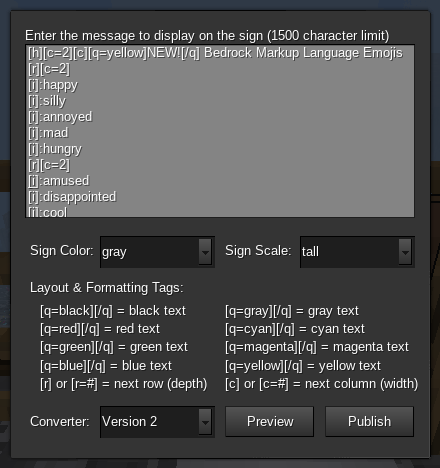 Old signs will be read-only, but remain viewable. They must be updated to access the new editing functionality. Punch the sign once, and a confirmation message will be displayed: "This sign is now updated. Right-click it holding sneak to open the message editor."