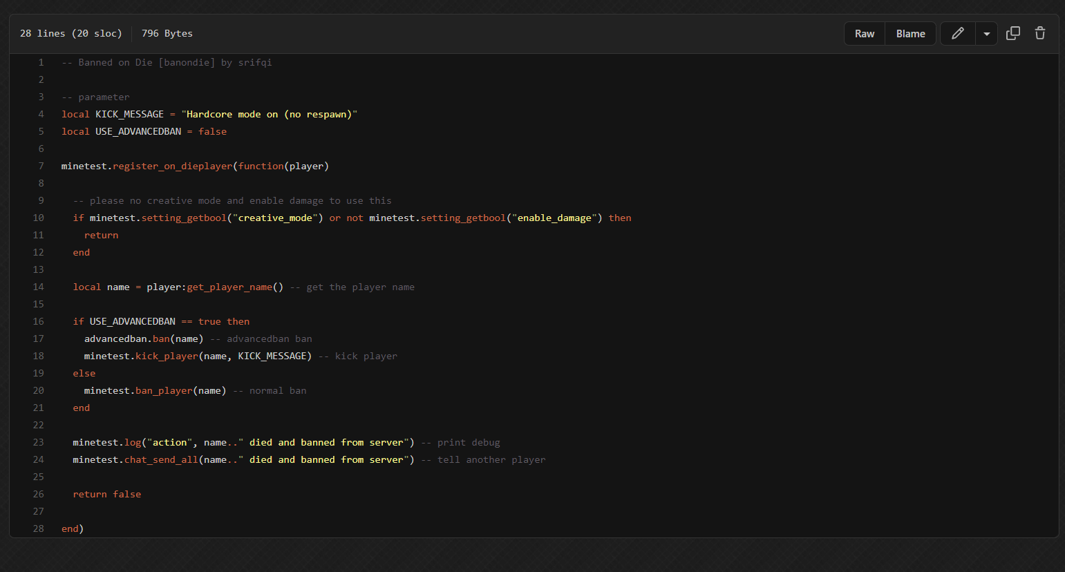 Exactly what I needed! Great mod to use. Also can be used as '1 life challenge' :)
