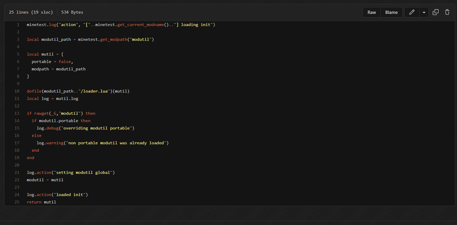 A utility mod for minetetest providing useful utilities that can be used in other mods. Goal of this mod is outsourcing utilities as well as unifying utilities. Feel free to suggest more utilities that should be added. Suggestions can be made to make your mods smaller or just if you need help with your own mods.