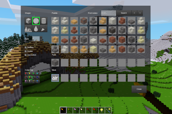 This is an extremely underrated mod that is extremely powerful for editing and creating terrain. While WorldEdit is useful for making cuboids, spheres, moving a cuboid selection X nodes... Terraform is useful for when you have existing or no terrain, and want to sculpt something for you to better build in.