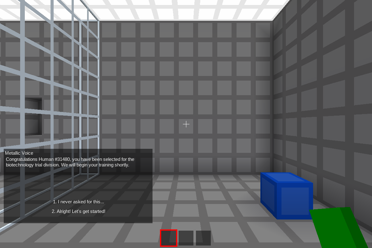 If you are bored of the usual ways of playing Minetest games, look no further: it's a very stable minigame, it has simple graphics that let you keep your focus when solving puzzles, and, last but not least, features a really innovative mechanic, that opens many roads for interesting and fun gameplay! The story elements are well spaced out, and will "guide" you through the various challenges you'll face in the lab. Its mechanics are simple in appearance, but are actually pretty clever, considering they merge together player properties with the node- space; a feat few games try to pull off (save parkour ones).