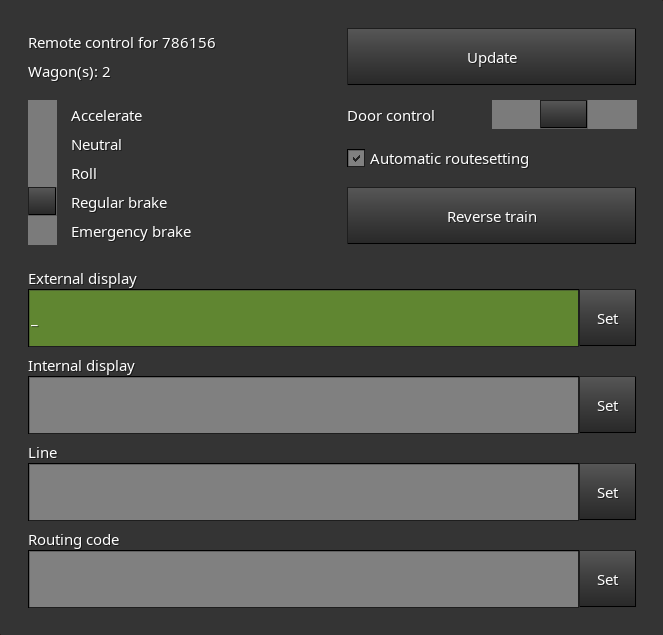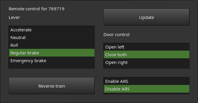 This mod allows you to remotely control certain properties of a train using a formspec.