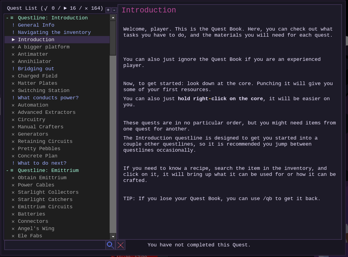 There is an in-game Quest Book to get you started. Have fun!